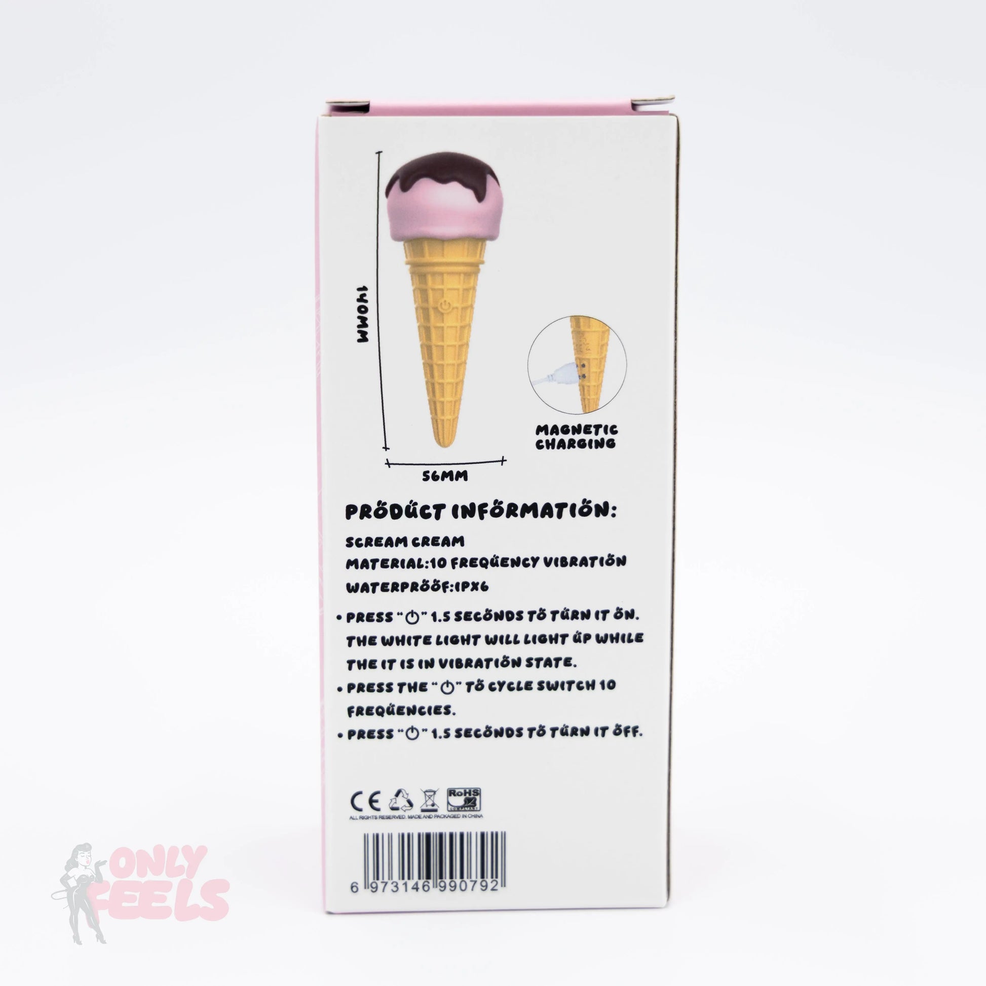 Sweet on the outside, seriously powerful where it counts. Scream Cream is a playful vibrating wand designed in the shape of an ice cream cone because pleasure should be fun, bold, and a little bit cheeky.